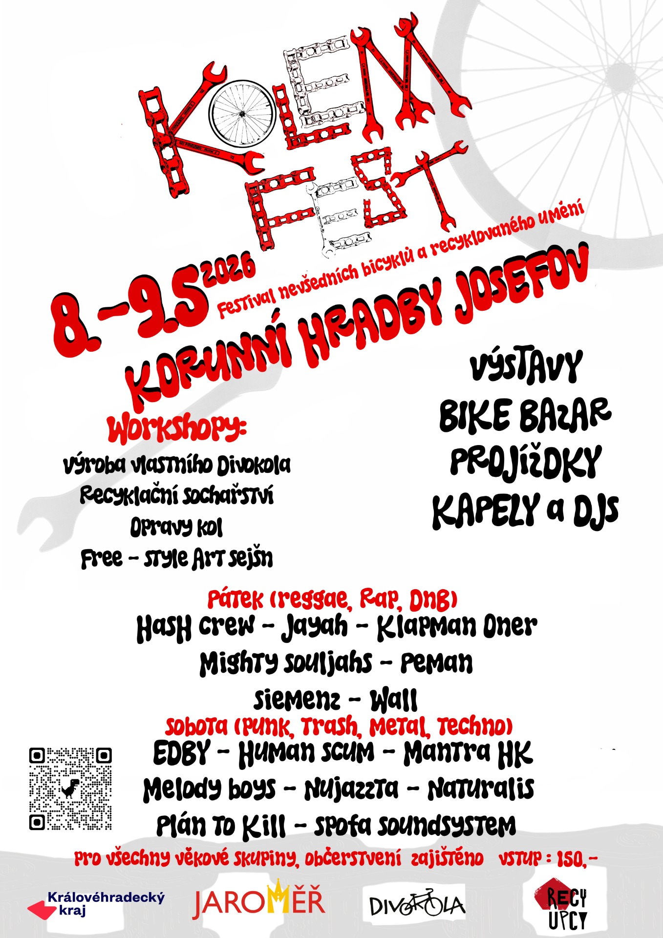 Zažijte workshop na výrobu vlastního divokola. Už od pátku budou připravena stanoviště s lektory, kteří Vám rádi poradí a pomohou s výrobou. Součástí festivalu budou výstavy, projíž´ďky na divokolech, opravy kol, recyklační sochařství, free-art sejšn a mnoho muziky napříč žánry.