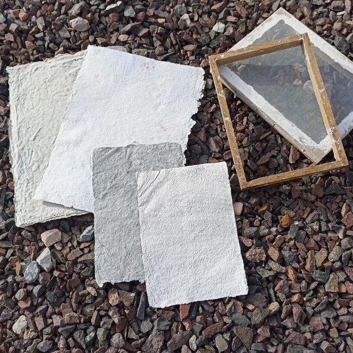 ručního papíru např. pro výrobu sešitů či blahopřání, semínkový papír