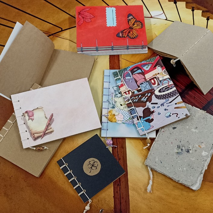 - papír (ruční papír, využití papírových tašek, japonská a sešitová vazba, fanziny, zápisníky)