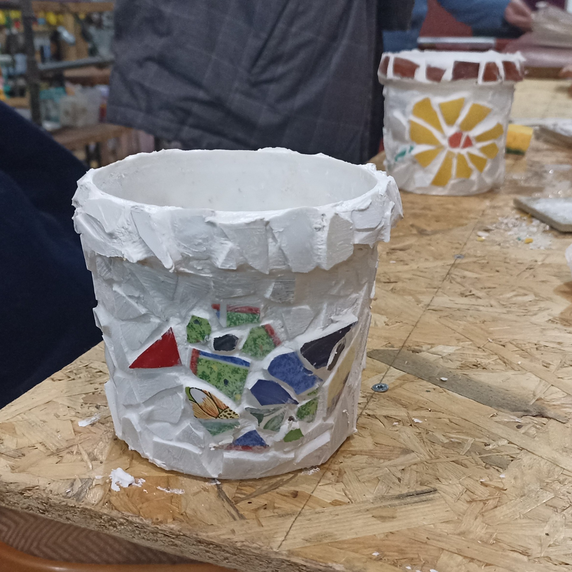 Výstup: mozaikové obrazy, květináče, podložky pod hrnce, designová zrcadla
