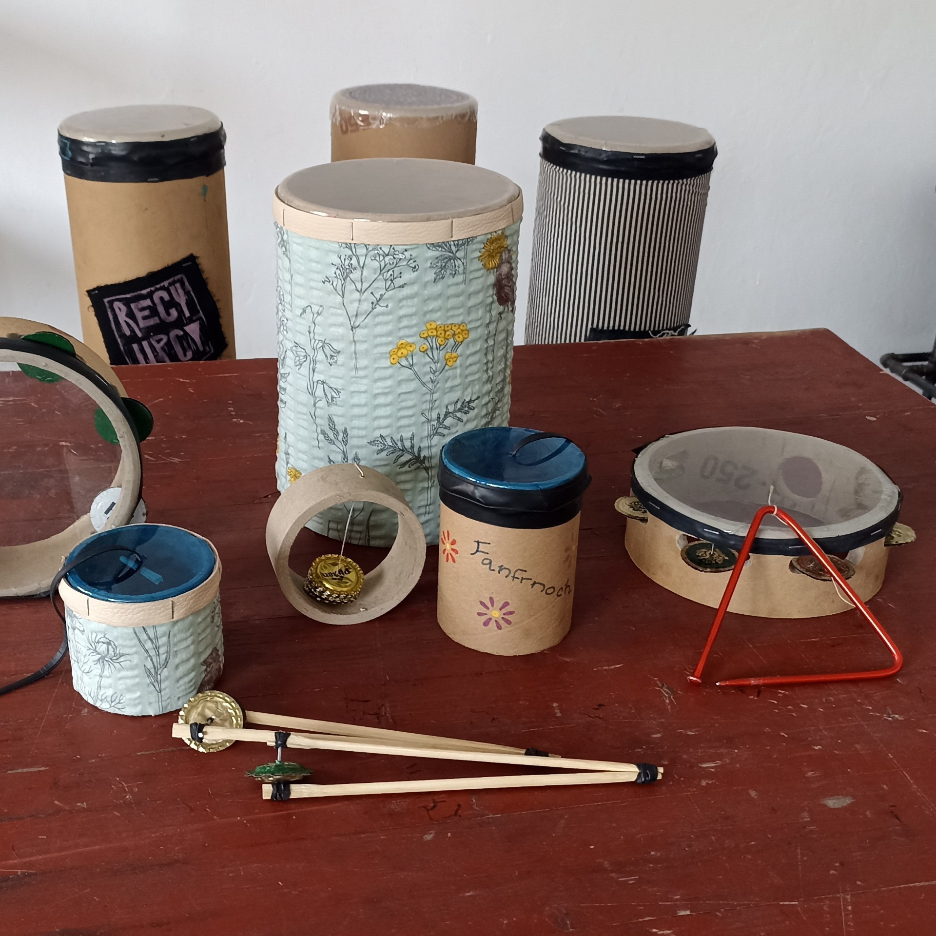 hudební nástroje, do hudební výchovy (bubínky, kastaněty, tamburíny,