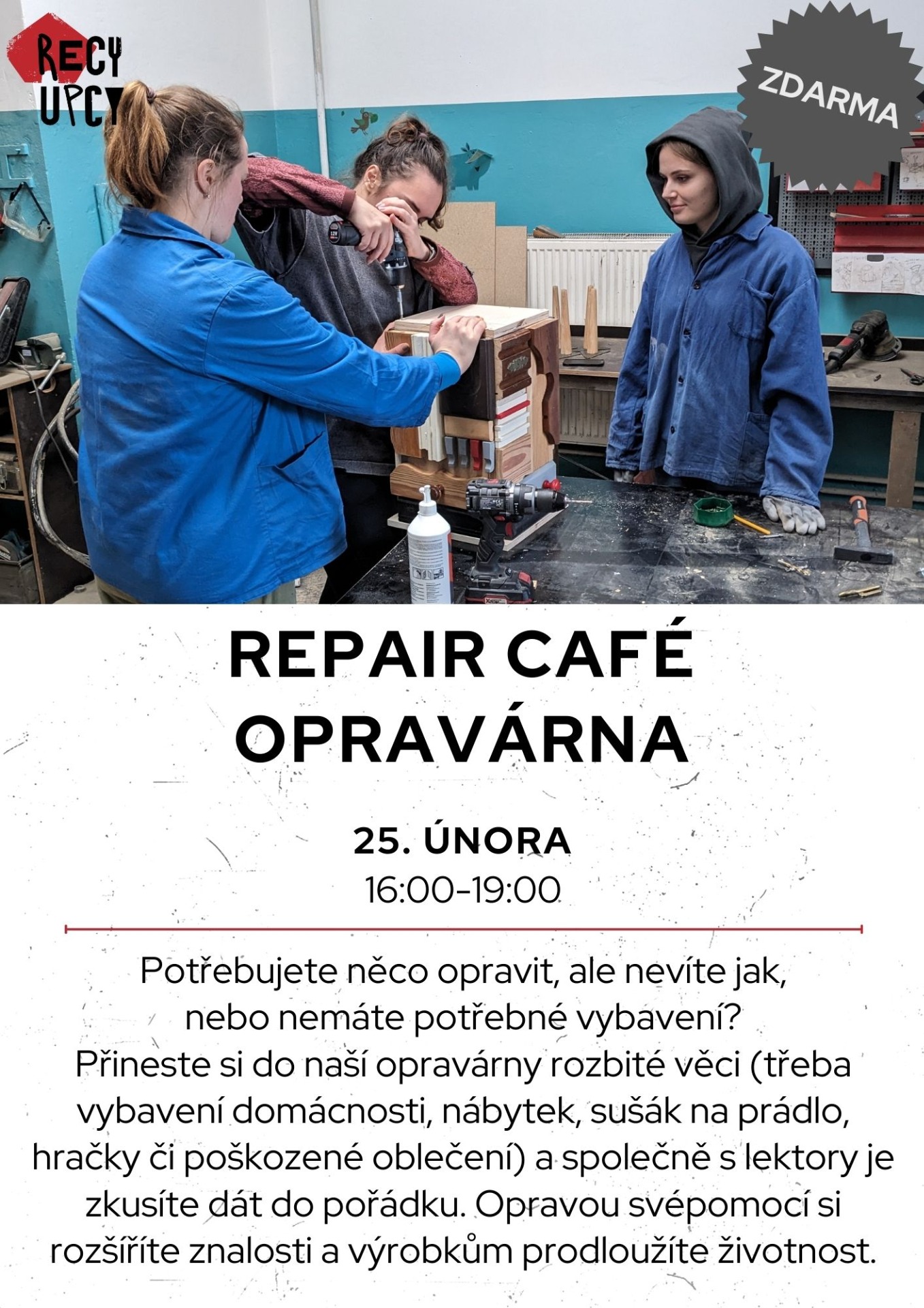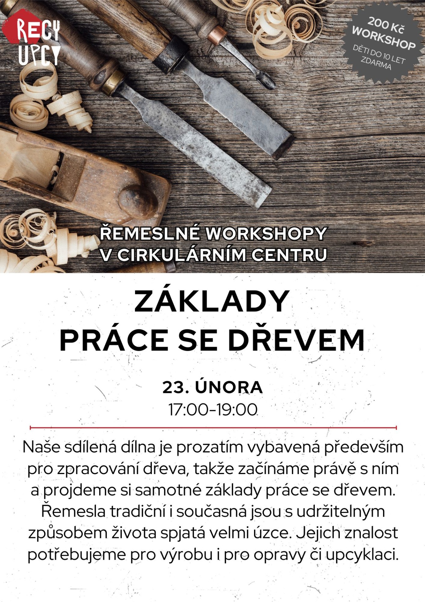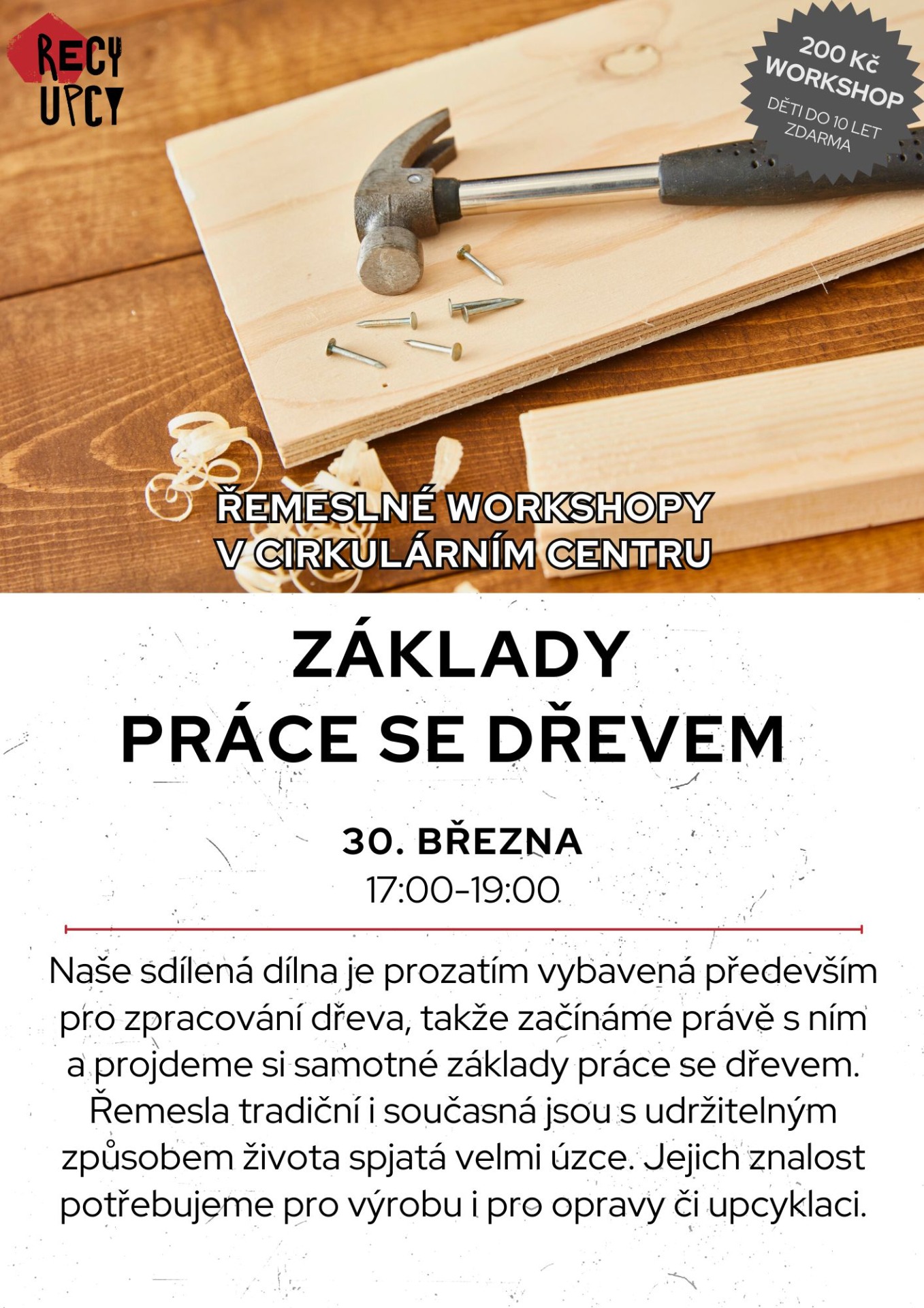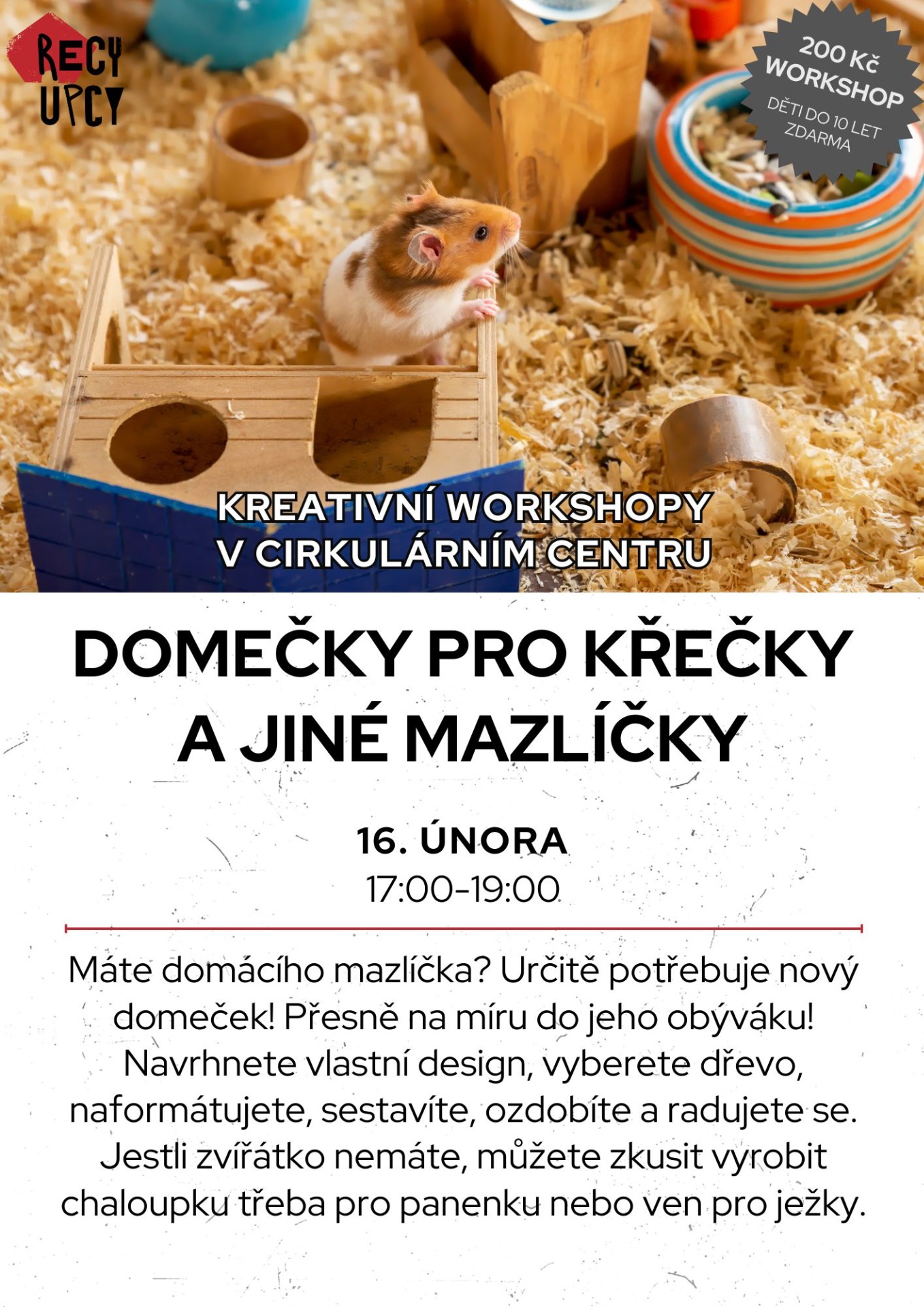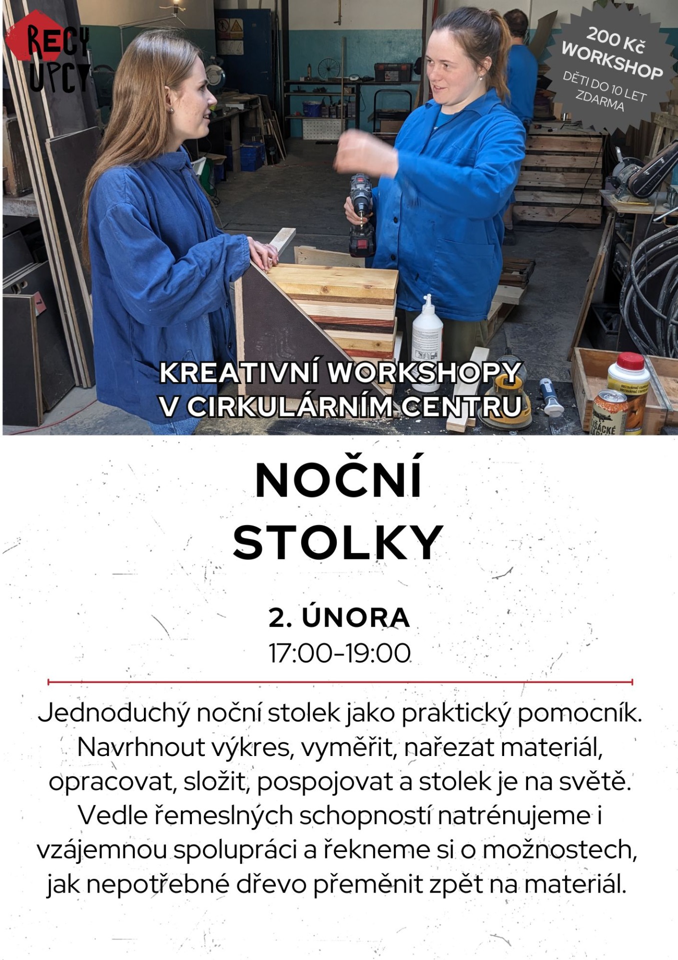 Místo: workshopy se odehrávají v dílnách Cirkulárního centra na adrese U