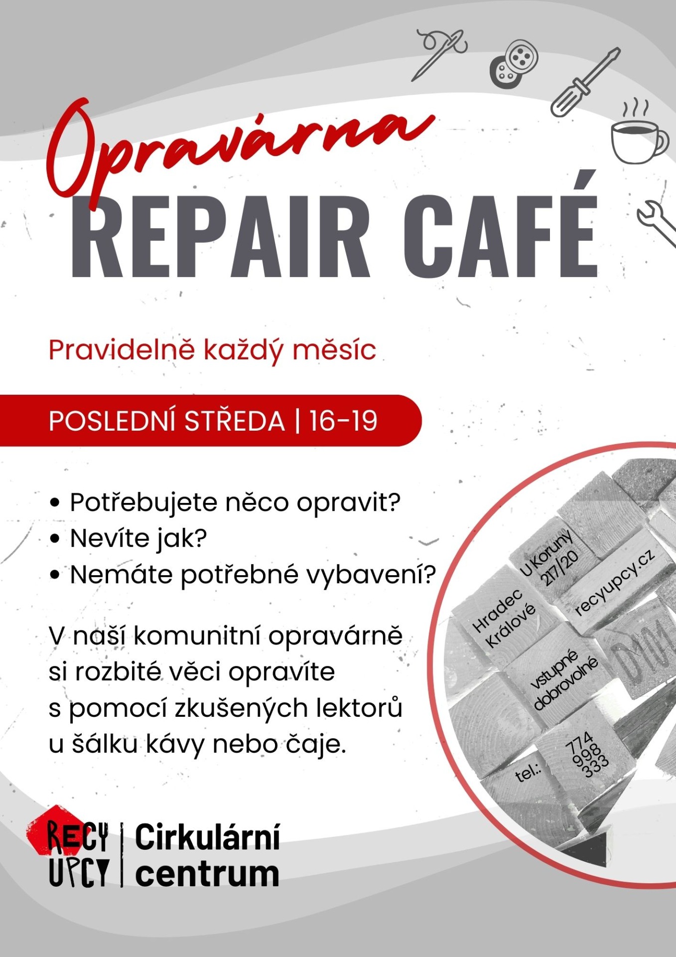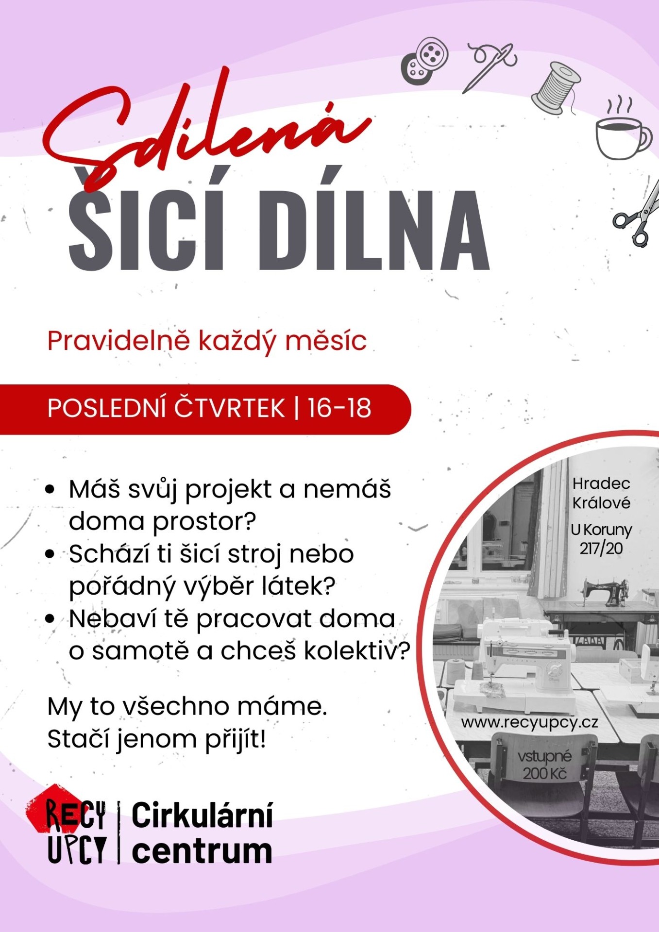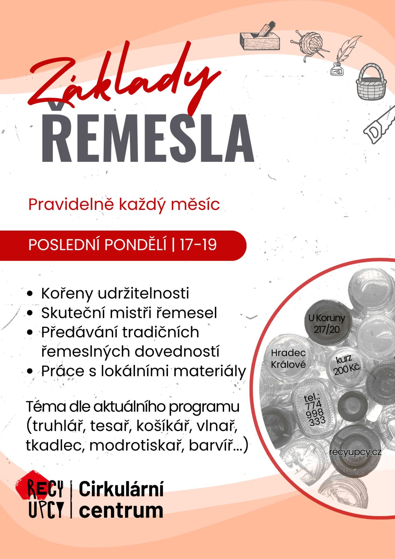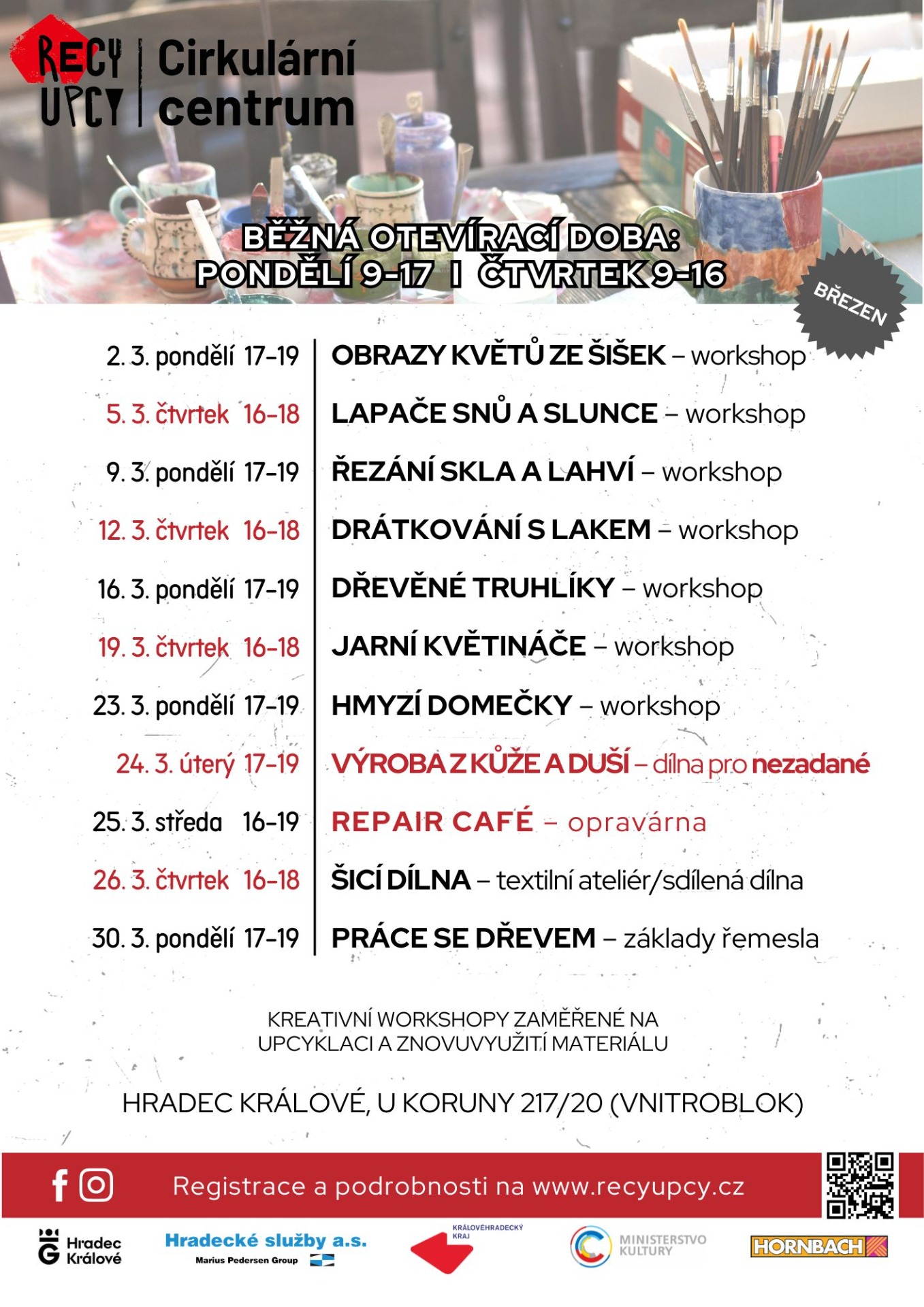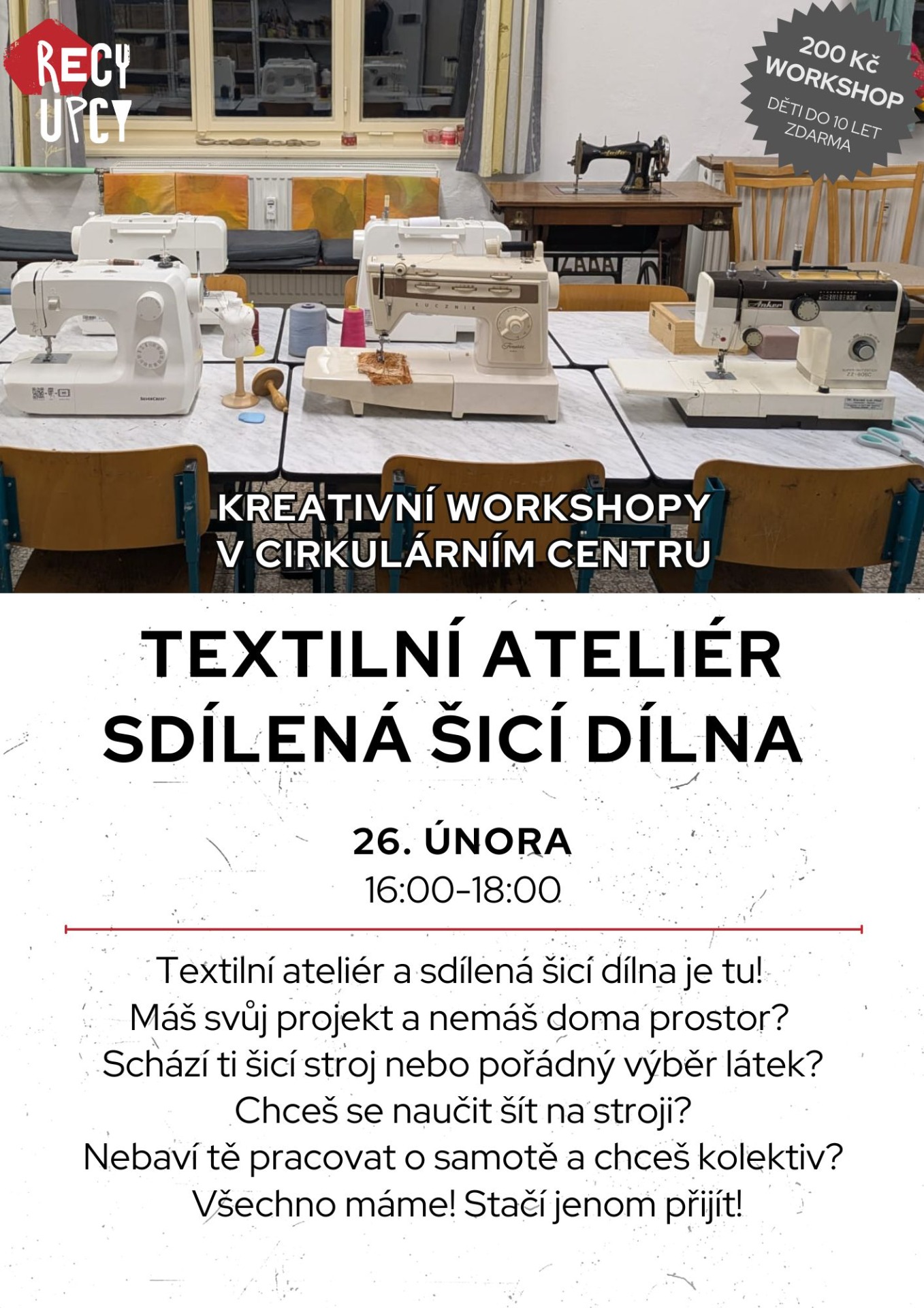 Místo: workshopy se odehrávají v dílnách Cirkulárního centra na adrese U